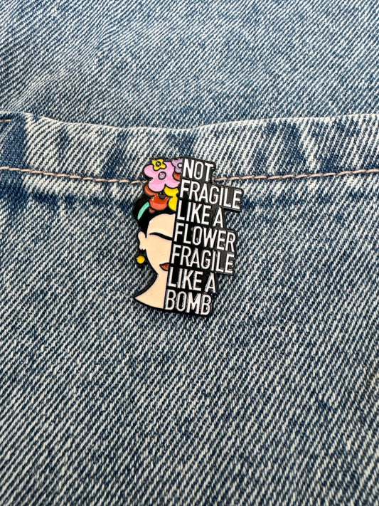 'Not fragile like a flower fragile like a bomb' enamel pin