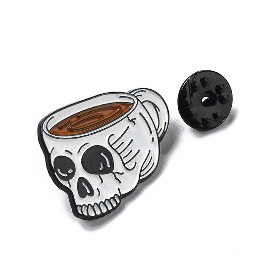 Skeleton skull coffee tea cup enamel pin