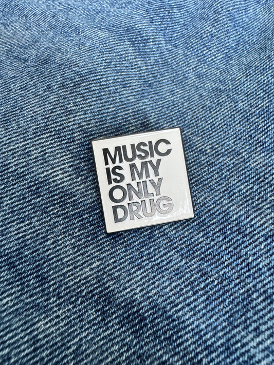 'Music is my only drug' enamel pin