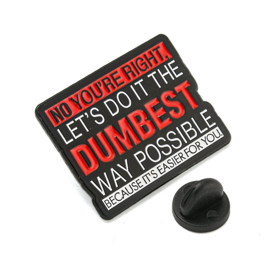 'No you're right, let's do it the dumbest way possible because it's easier for you' enamel pin