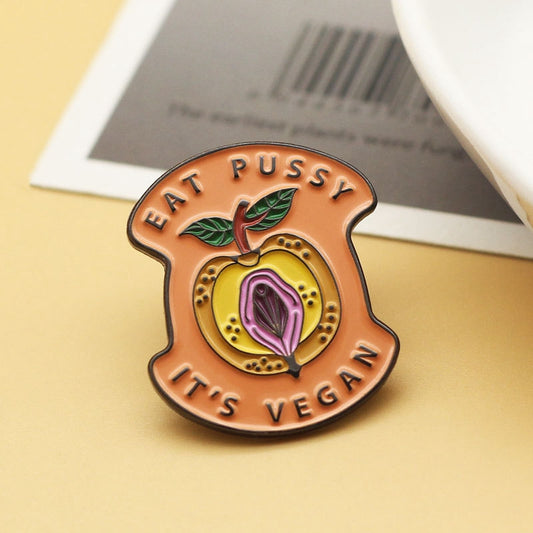 'Eat pussy, it's vegan' enamel pin