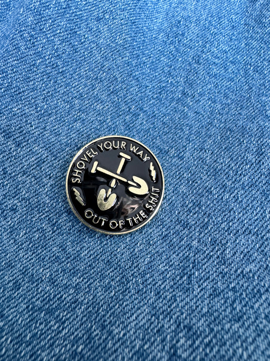 'Shovel your way out of the shit' enamel pin