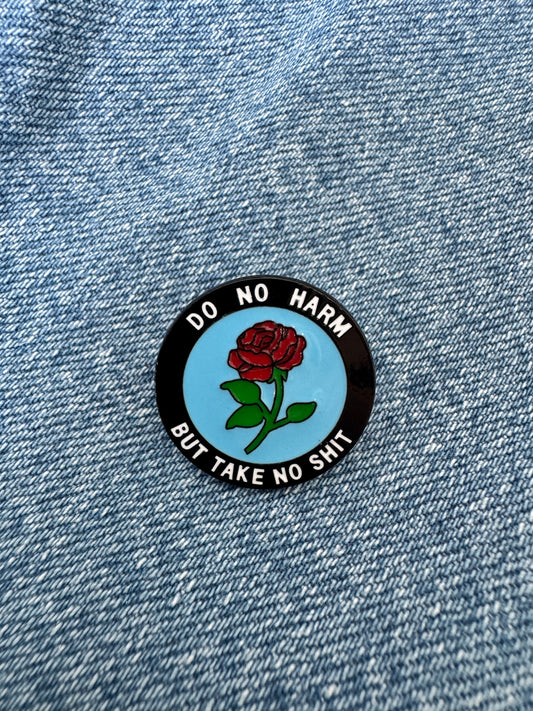 Rose 'do no harm but take no shit' enamel pin