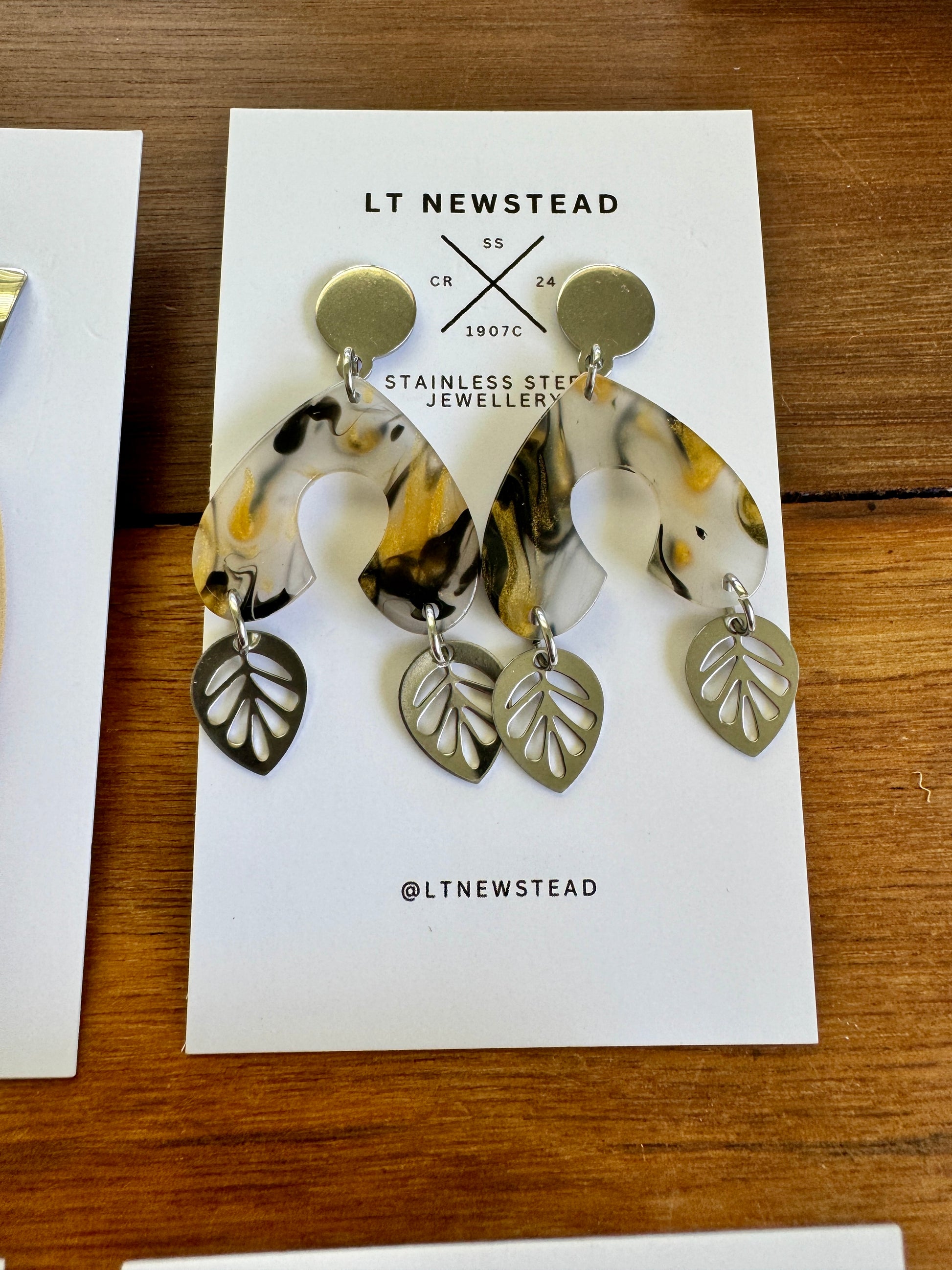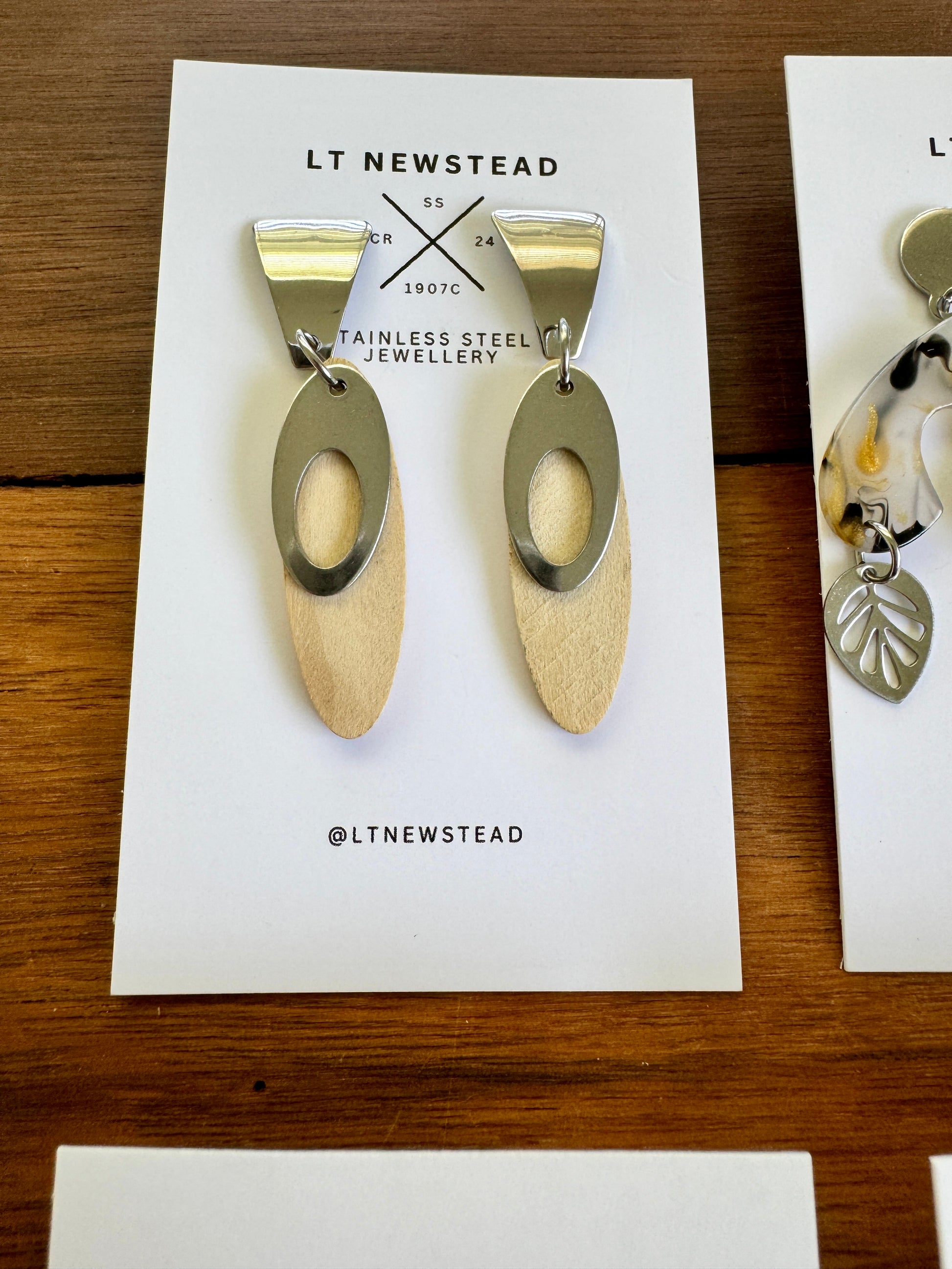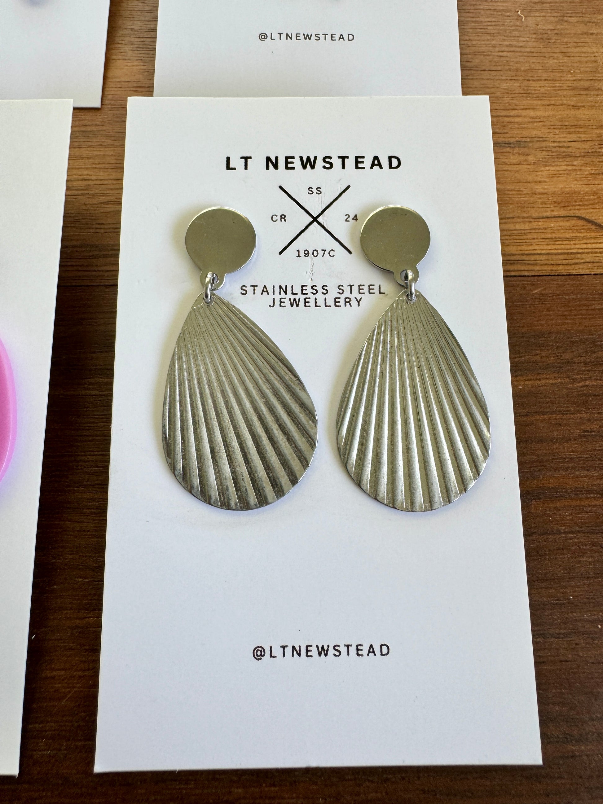 These are earrings designs from my previous brand and are made from stainless steel. Stainless steel earrings are great for sensitive ears and it doesn't tarnish.