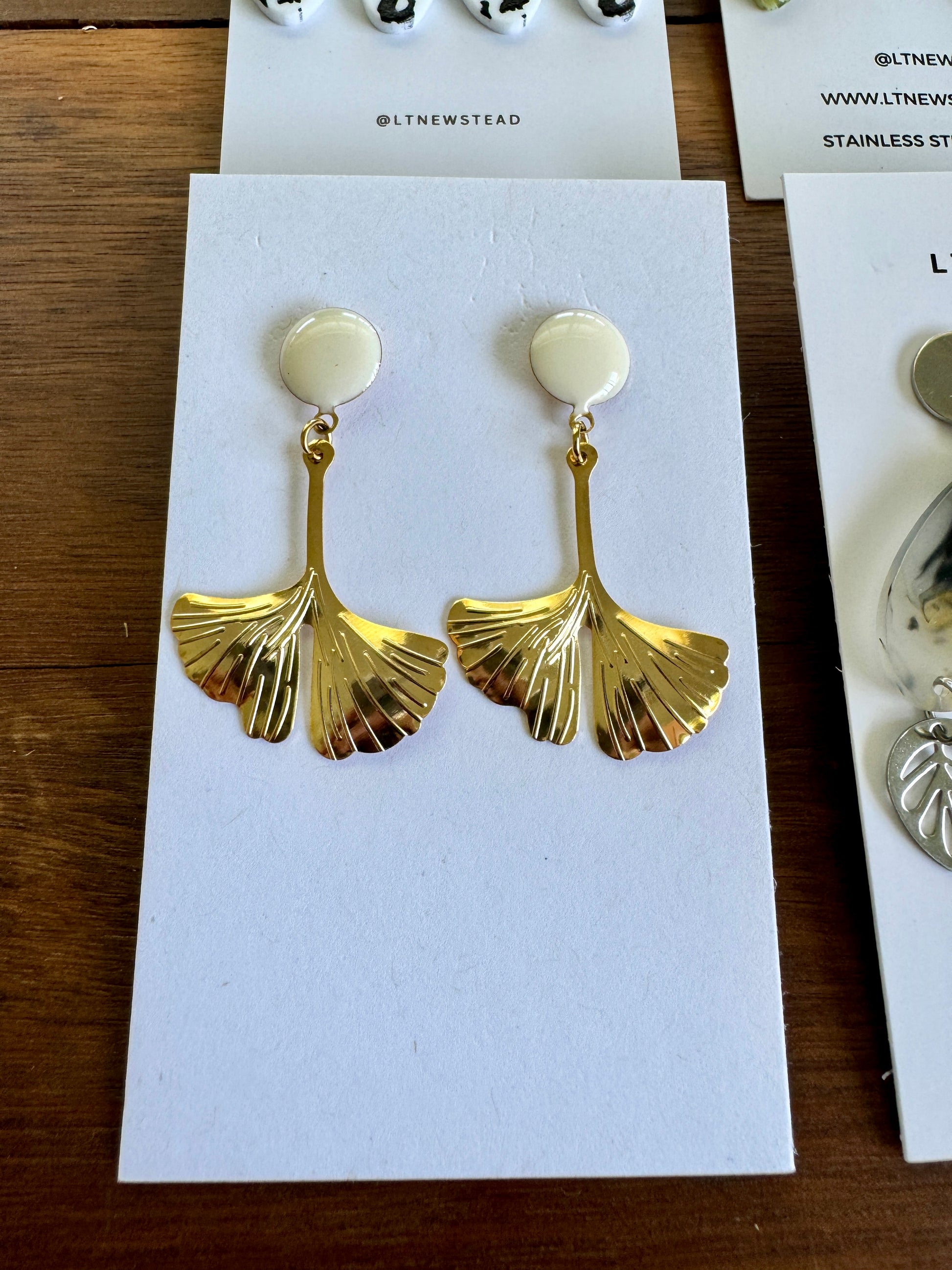 These are earrings designs from my previous brand and are made from stainless steel. Stainless steel earrings are great for sensitive ears and it doesn't tarnish.
