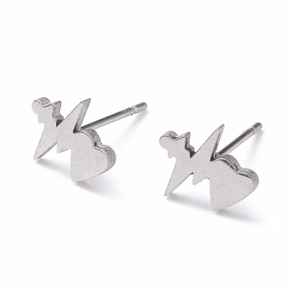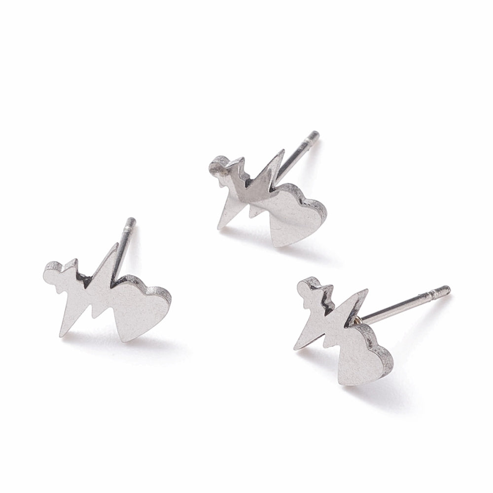 Stainless steel studs in the shape of a heartbeat. With a length of approx 10mm.