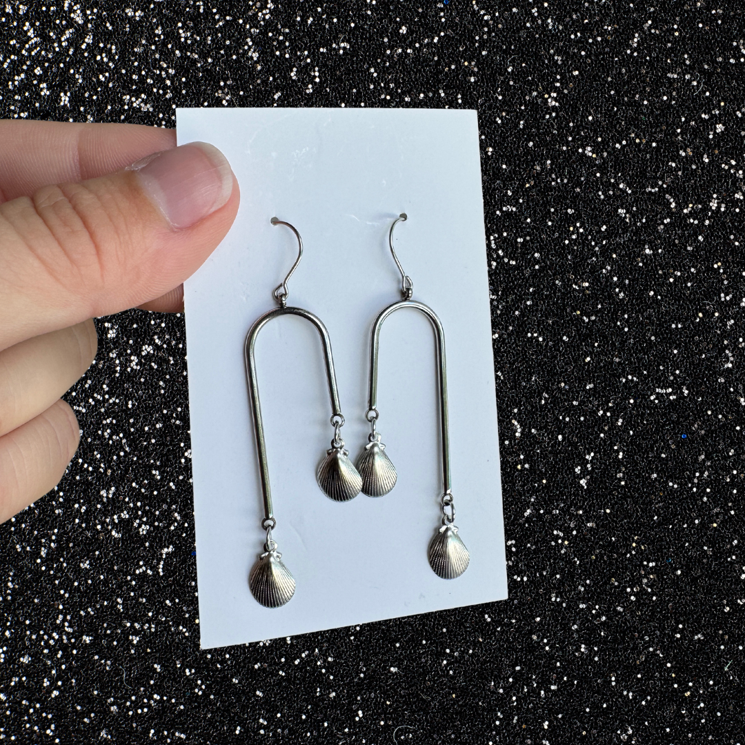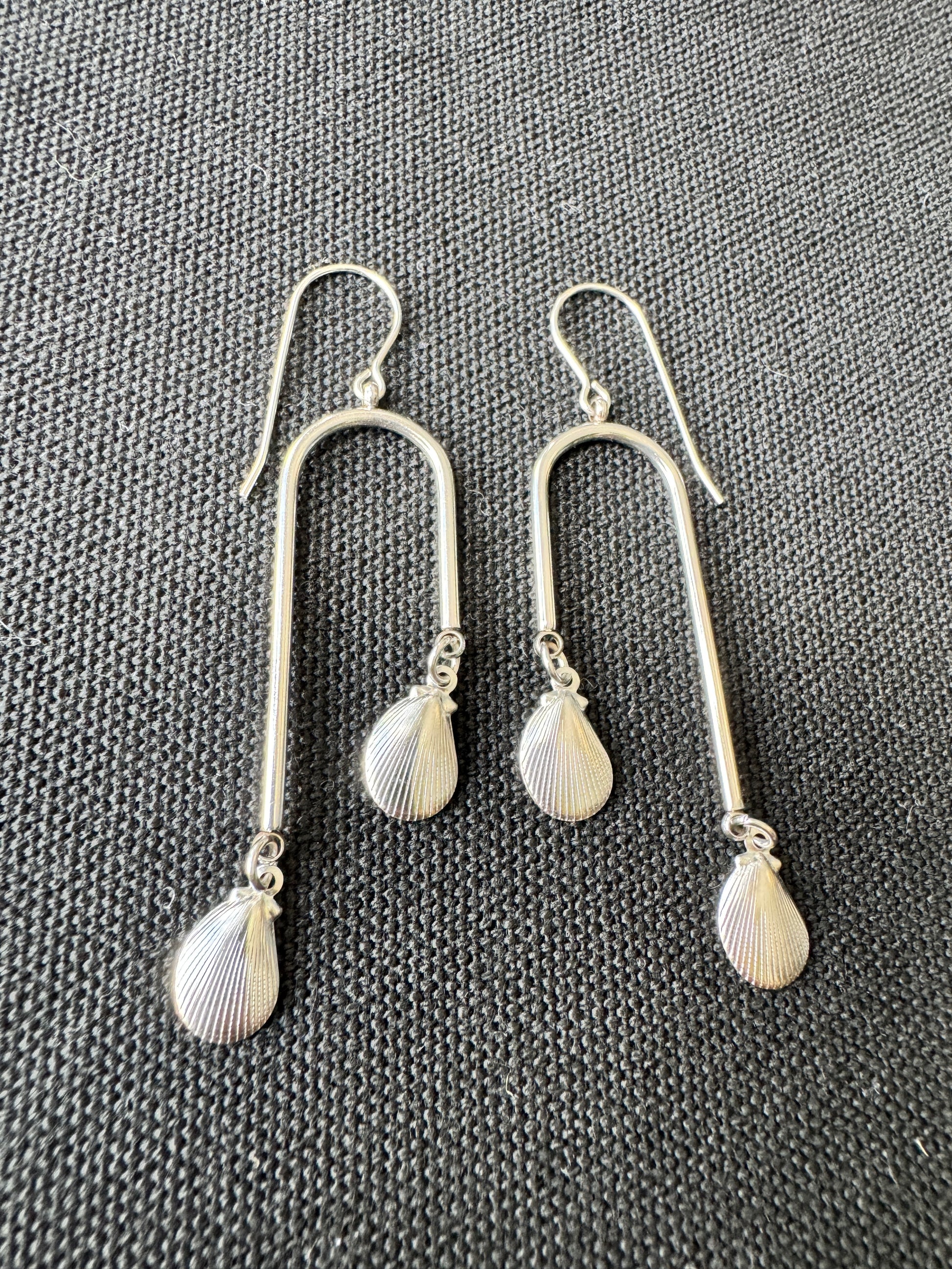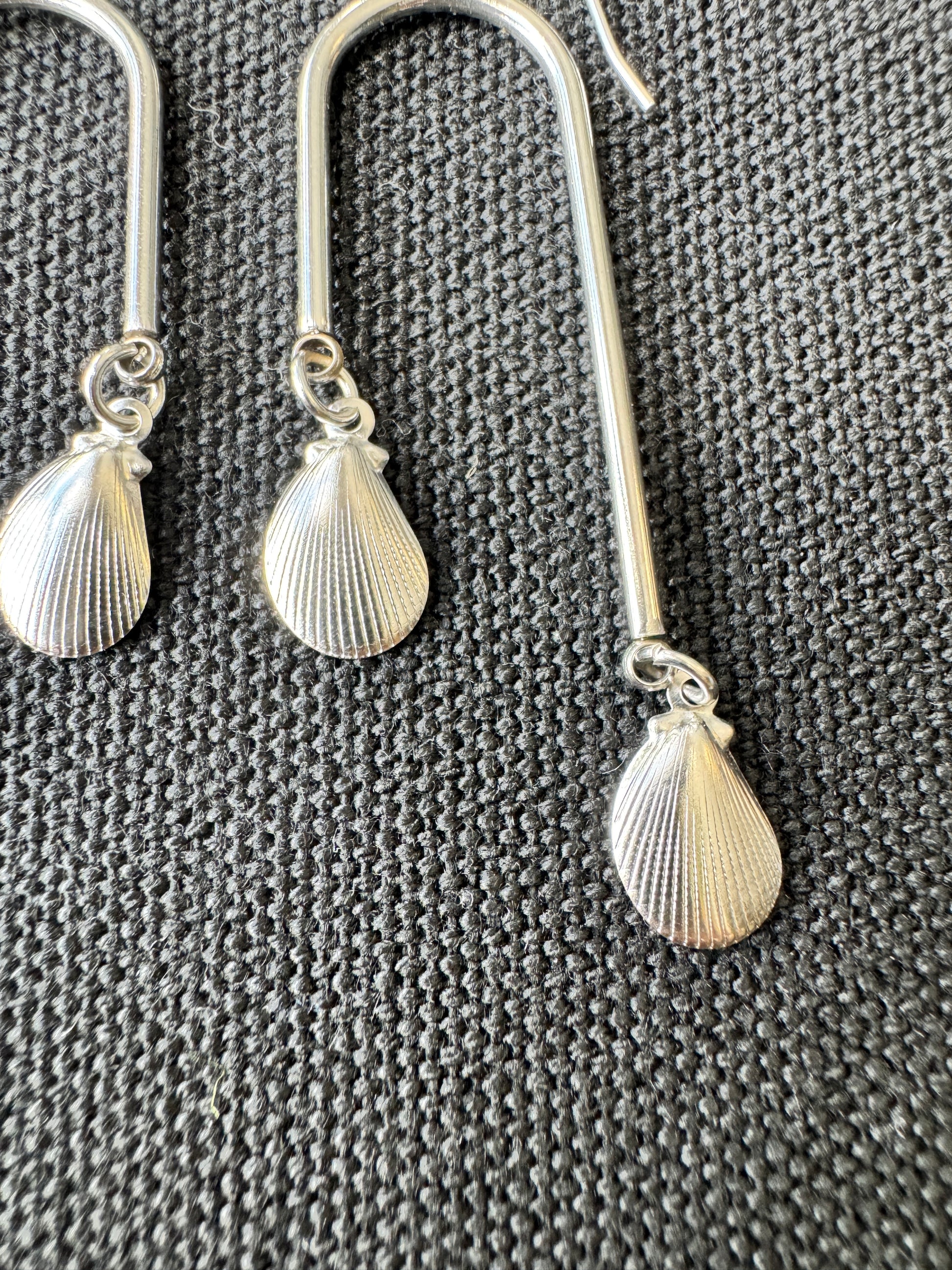 Stainless steel waterfall drop earrings with shell charms. A length of approx. 65mm.