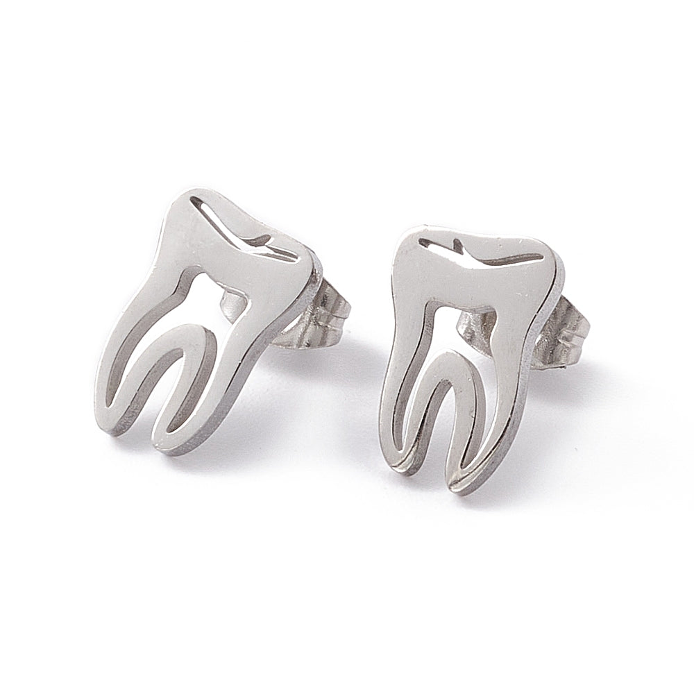 Stainless steel studs in the shape of a tooth. With a length of approx 14mm.